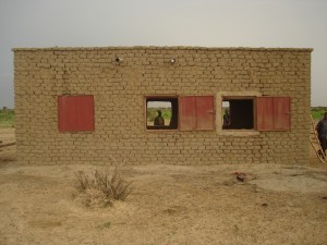 L’école est située en bordure du village afin de pouvoir être agrandie dans l’avenir. Elle a été entièrement construite par les parents, qui pour la plupart n’avaient jamais construit de bâtiment en dur. Cette expérience a eu des conséquences positives sur tout le village : de nouvelles maisons en banco, plus solides, ont été construites par certaines familles qui avaient participé au chantier de l’école.